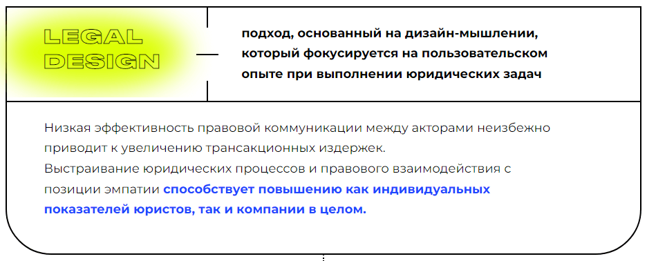 По мнению экспертов курса, если не пренебрегать возможностями креаторов, то любую правовую систему или услугу можно будет сделать более ориентированной на пользователя. Объединяя усилия, специалисты юридического и творческого секторов могут создать понятные, удобные и визуально привлекательные интерфейсы для оказания юридических услуг.