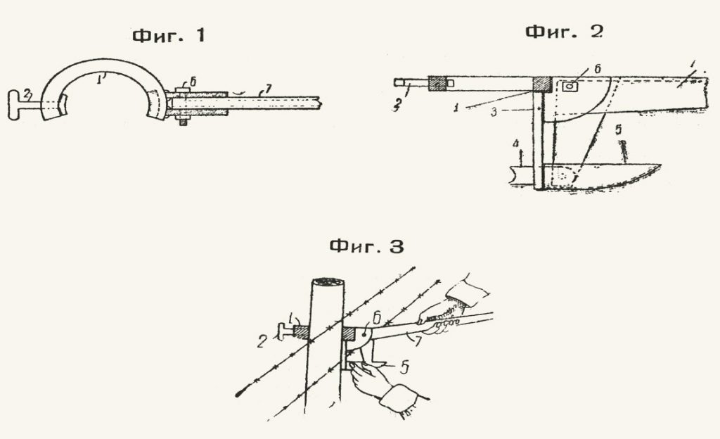 Так разработчик И. В. Келин придумал уникальное и достаточно простое по своей сути устройство для закрепления колючей проволоки на кольях при помощи скобок.