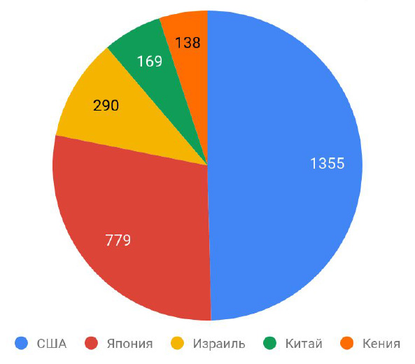 Если же оценивать запросы на зеленые технологии по категориям, то ситуация здесь несколько иная: процентное соотношение более сбалансировано между четырьмя основными категориями – «Загрязнение и отходы» (28,3%), «Энергетика» (21,4%), «Сельское и лесное хозяйство» (20,2%), «Водное хозяйство» (19,1%). Менее востребованы «Транспорт» (5,2%) и «Продукты, материалы и способы» (5,8%). И вот опять парадокс: в «Строительстве» запросы в экоинновации отсутствуют напрочь!