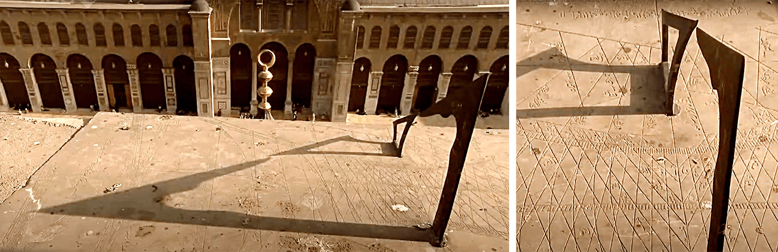 По прошествии недолгого времени Ибн аль-Шатир смастерил большие солнечные часы на одном из минаретов дамасской мечети. Тени от их вертикальных «стрелок» падали на расчерченный множеством линий «циферблат» таким образом, что точно обозначали время начала каждой из пяти дневных молитв.